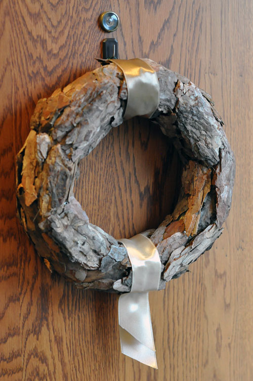 Nehogy már a bejárati ajtó maradjon ki a dekorálásból! Így a kukucskáló lyuknak sem kell árválkodnia. Ez a koszorú nem eladó, de ha valaki szeretné elkészíteni, írjon nekünk, és elmondjuk, hogy hogy kell.