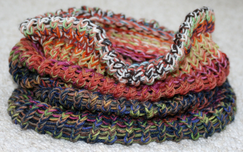 Vettem egy kötőkeret készletet. Aztán elkenődtem, hogy egyetemi diplomával képtelen vagyok a használati útmutatóját értelmezni. Elolvastam az angol és német leírását is, megnyugodtam, hogy annyira mégse vagyok életképtelen, mert a magyarból két elég fontos mondat hiányzott. Aztán a jútyúbon kerestem egy videót, mert mégiscsak a vizuális segítség a legjobb segítség, és sikerült megtanulni használni. Kötöttem már vele sapit kisfiamnak és magamnak, de most elkészült ez a sál, aminek nagyon örülök. Kicsit fel lehet vele dobni a: “de szuper! ma is kék farmer, sportcipő, kapucnis pulcsi szerelésben megyek a játszira…” outfitet:D.