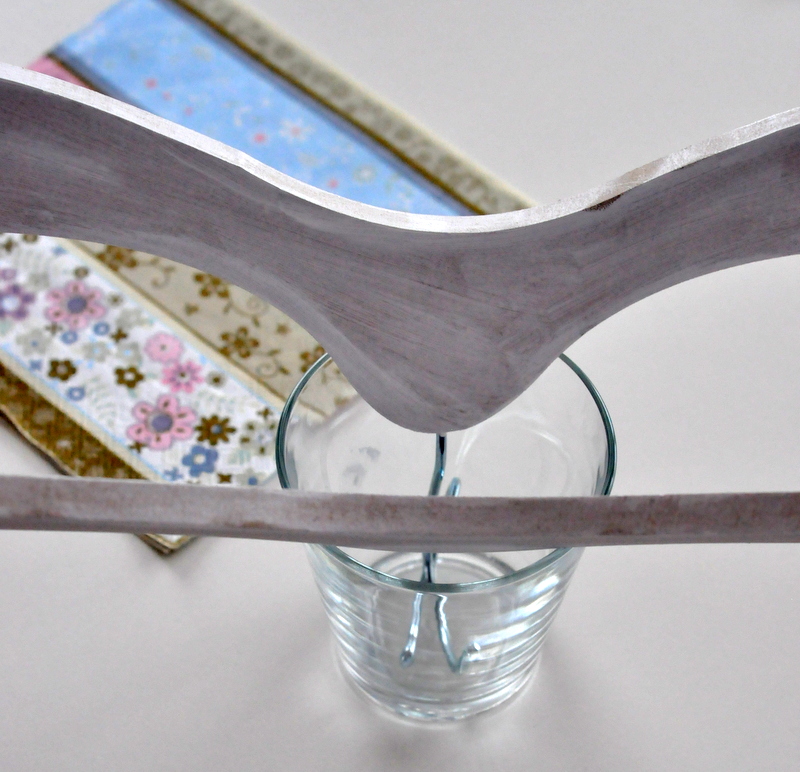 A natúr vállfákat portalanítsuk (esetleg csiszoljuk meg előtte), és fessük be akril festékkel 2 rétegben (várjuk ki a száradási időt a két réteg között).